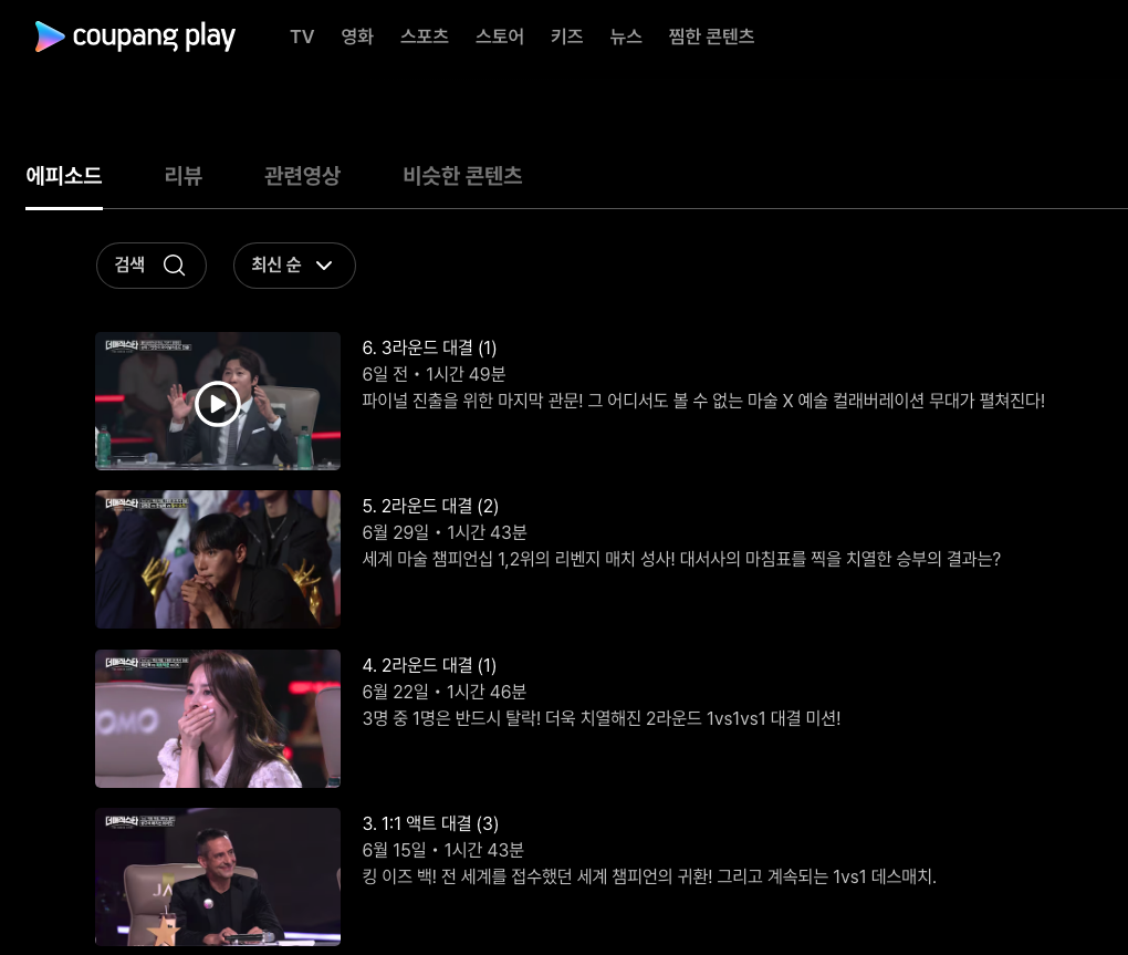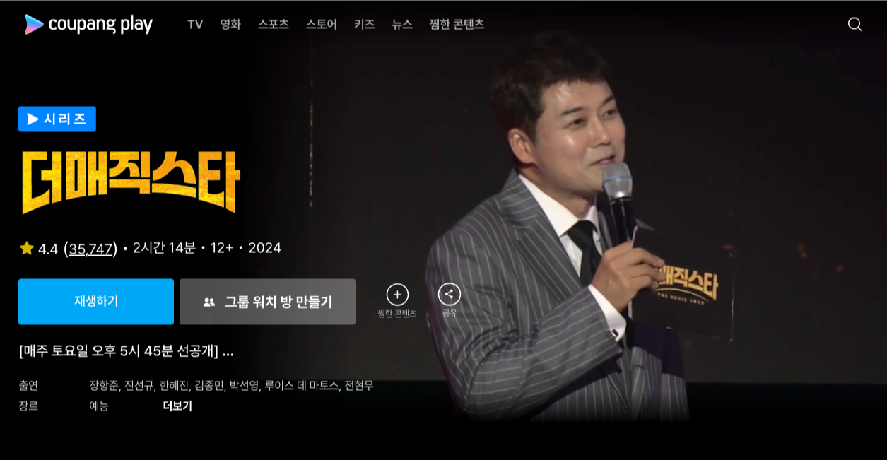 - 쿠팡플레이에 접속해 더 매직스타를 검색합니다.
