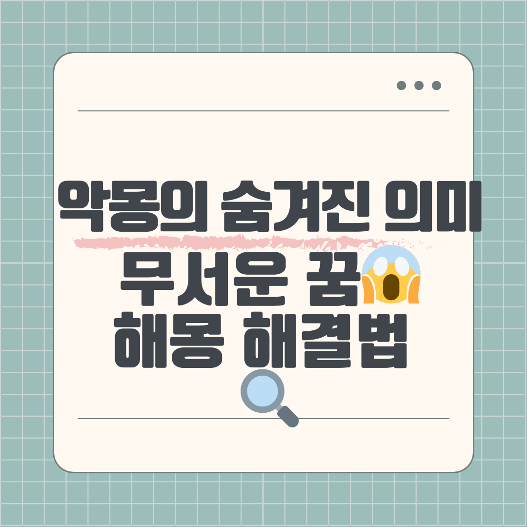 - 자주 꾸는 악몽의 원인을 이해하고, 해결법을 통해 극복할 수 있습니다.