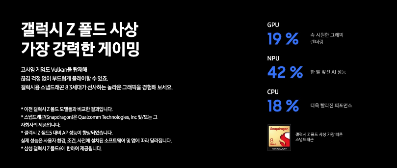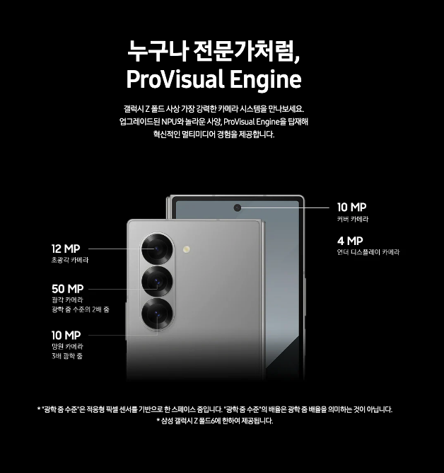 - 프로세서: 갤럭시 Z플립6는 최신 스냅드래곤8 3세대 AP를 사용하여 더 빠르고 효율적입니다.