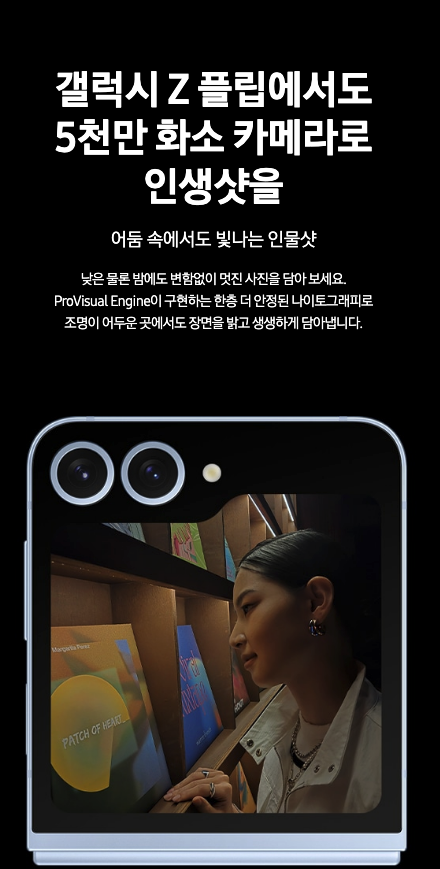 - 커버 디스플레이: 3.4인치 커버 디스플레이로, 폴더블 상태에서도 주요 알림과 간단한 작업을 손쉽게 처리할 수 있습니다. AMOLED 기술을 사용하여 밝고 선명한 화면을 제공합니다.